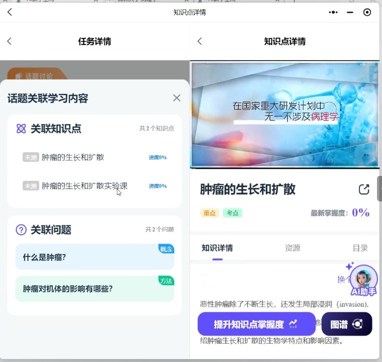 病理学系主任王医术教授对AI课程新版本的一些新功能进行了简要介绍,并希望各位老师能够充分利用AI课程新版本助力教学。然后,智慧树网KG教学运行部运行主管谢语罗为各位老师进行AI课程新版本应用培训。谢语罗主管进入智慧树官网病理学课程,通过实际操作演练,从AI辅助教学功能介绍、AI辅助教学平台功能介绍、班级管理与操作指南、微信小程序学习功能介绍、教学应用、智慧试卷生成与发布、PPT插件、学生学习应用场景和学生成绩观测等方面进行了详细的介绍。