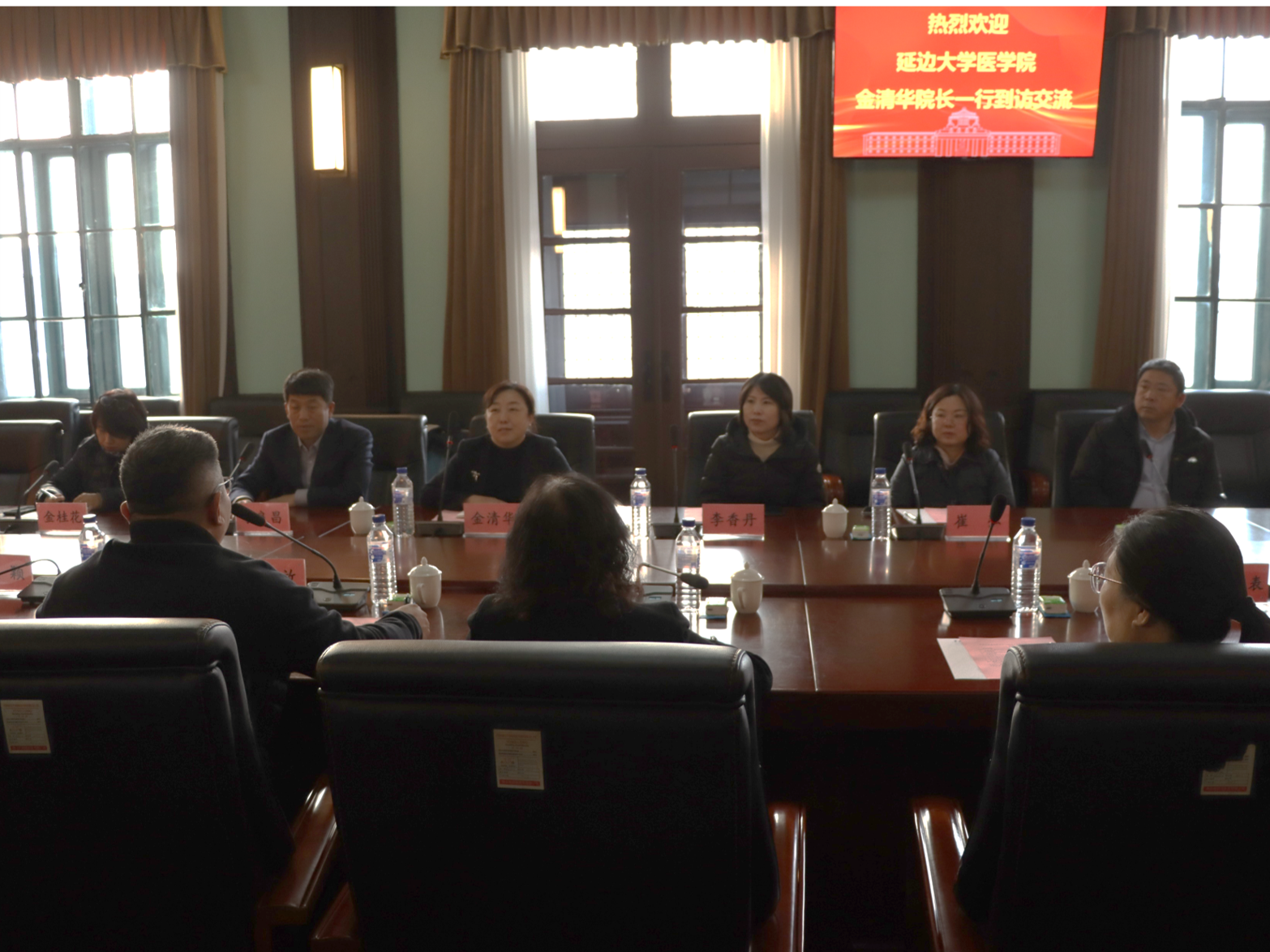 11月28日下午,延边大学医学院院长金清华、副院长李良昌、微生物与免疫学实验教学中心主任金桂花、机能学实验教学中心主任崔弘、形态学实验教学中心主任李香丹、解剖学教研室秦向征一行来我院调研交流。SexAV