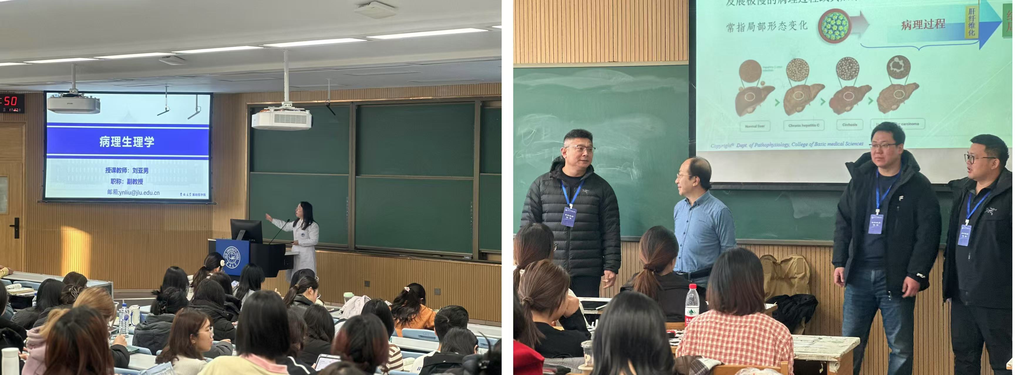为确保新学期教学工作平稳有序开展,SexAV 党委书记王晓荣、院长王放、教学副院长杨明、党委副书记李东洋以及教务办全体工作人员深入课堂听课,对新学期学生上课状态、教师授课状态、课堂教学秩序等情况进行了全面了解。并深入《病理生理学》和《疾病学基础》两个课堂随堂听课,并在课间与师生互动交流。