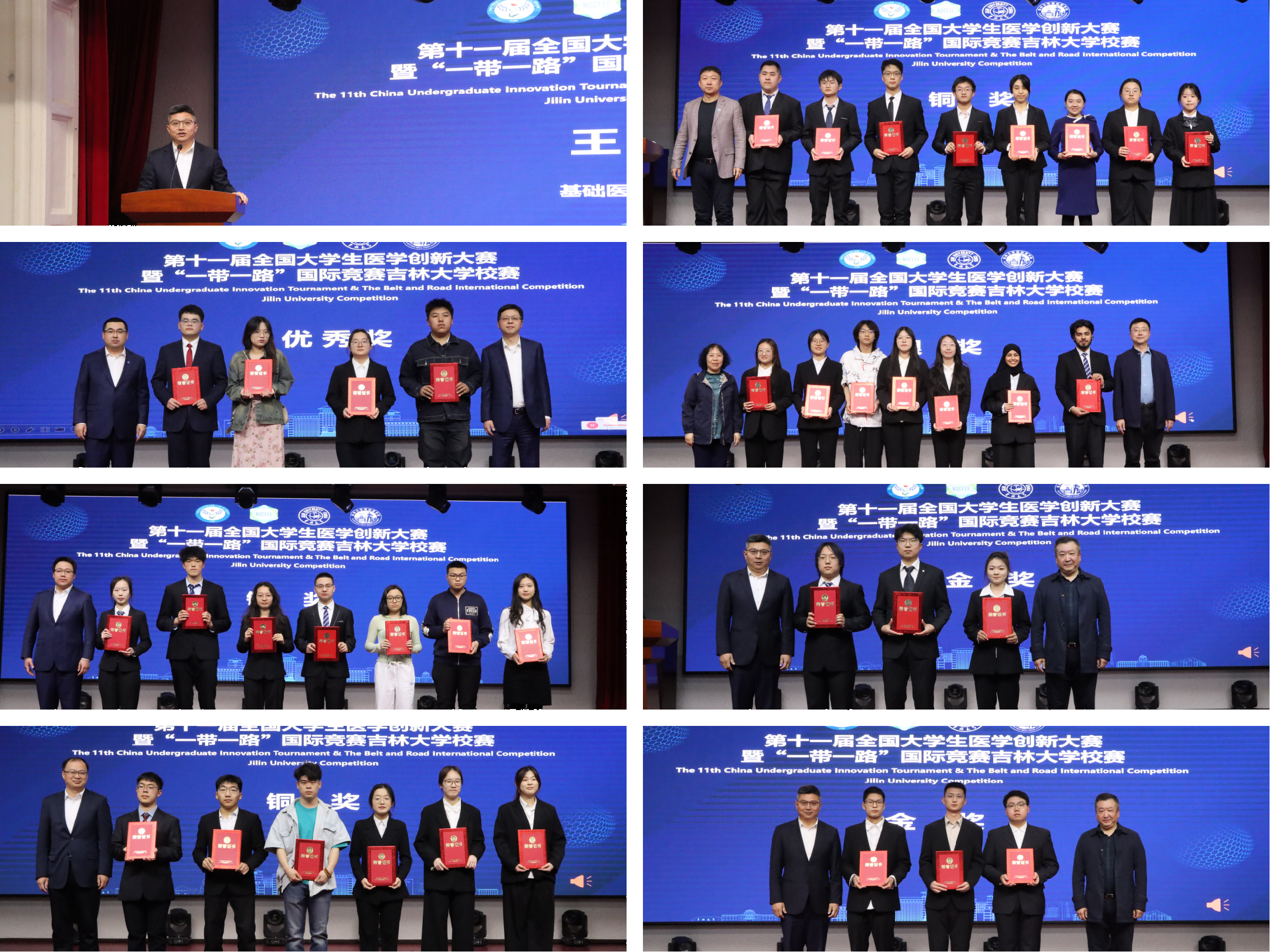 院长王放教授致闭幕式辞,他向各获奖队伍表达祝贺,向精心指导的专家评委致以崇高的敬意,并向支持赛事的各单位领导表示衷心感谢。王院长强调,此项赛事代表了我国基础医学领域本科生学科竞赛的顶尖水准。希望各参赛队伍胜不骄败不馁,晋级的团队以更加饱满的热情、扎实深厚的理论基础、敏捷的思辨能力和厚重的科学素养,在未来的区赛、国赛中展现吉大医学生的风采,代表吉大医学取得更加优异的成绩!