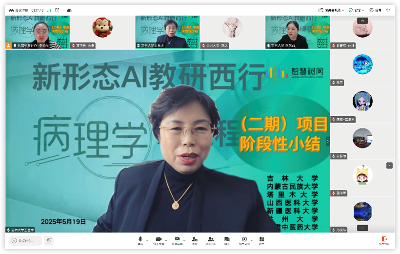 主持的《病理学AI课程》新形态教研西行(二期)项目阶段性小结会议如期举办。内蒙古民族大学、塔里木大学、山西医科大学、新疆医科大学、兰州大学和甘肃中医药大学等七所高校的代表共同参会,总结经验成果,展望未来发展方向。