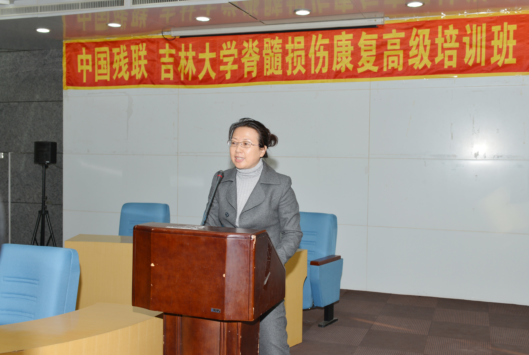 医学教育资源和综合办学优势,根据学员的需求和实际,精心设计理论与实际结合、课堂教学与康复机构实地实习结合的培训内容,认真做好中残联“十二五”在职康复专业骨干和学科带头人培训工作,提高为残疾人提供康复服务的能力和水平,使更多的残疾人达到“人人享有康复服务”的目标,推动残疾人康复事业全面、协调、可持续发展。吉林省残联康复部王建平部长在致词中提出:作为中残联康复人才培养基地,白求恩医学院举办了多次康复人才培训班,特别感谢为吉林省培养了一批优秀的康复人才,希望学员通过培训班的学习,提高业务水平,掌握最新的脊髓损伤康复治疗方法,为我国的残疾人康复工作做出贡献。白求恩医学院副院长程丕显主持了仪式。