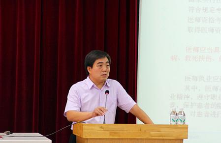 下午,王县成在新民校区第二教学楼2402教室为我校基础医学、临床医学等学科主任、教学组长、骨干教师、教学管理人员及相关专业学生作了以《国家医师资格考试和医师准入要求》为主题的报告。他从临床执业医师的基本要求(准入标准)切入,全面细致地从执业医师资格考试基本设计与实施、全国执业医师考试的基本情况、医师资格考试存在问题与改革设想等多个方面为师生进行讲解,他希望对医学生进行有的放矢的培养,把学生培养成为合格的医务工作者。何佳作了《SexAV