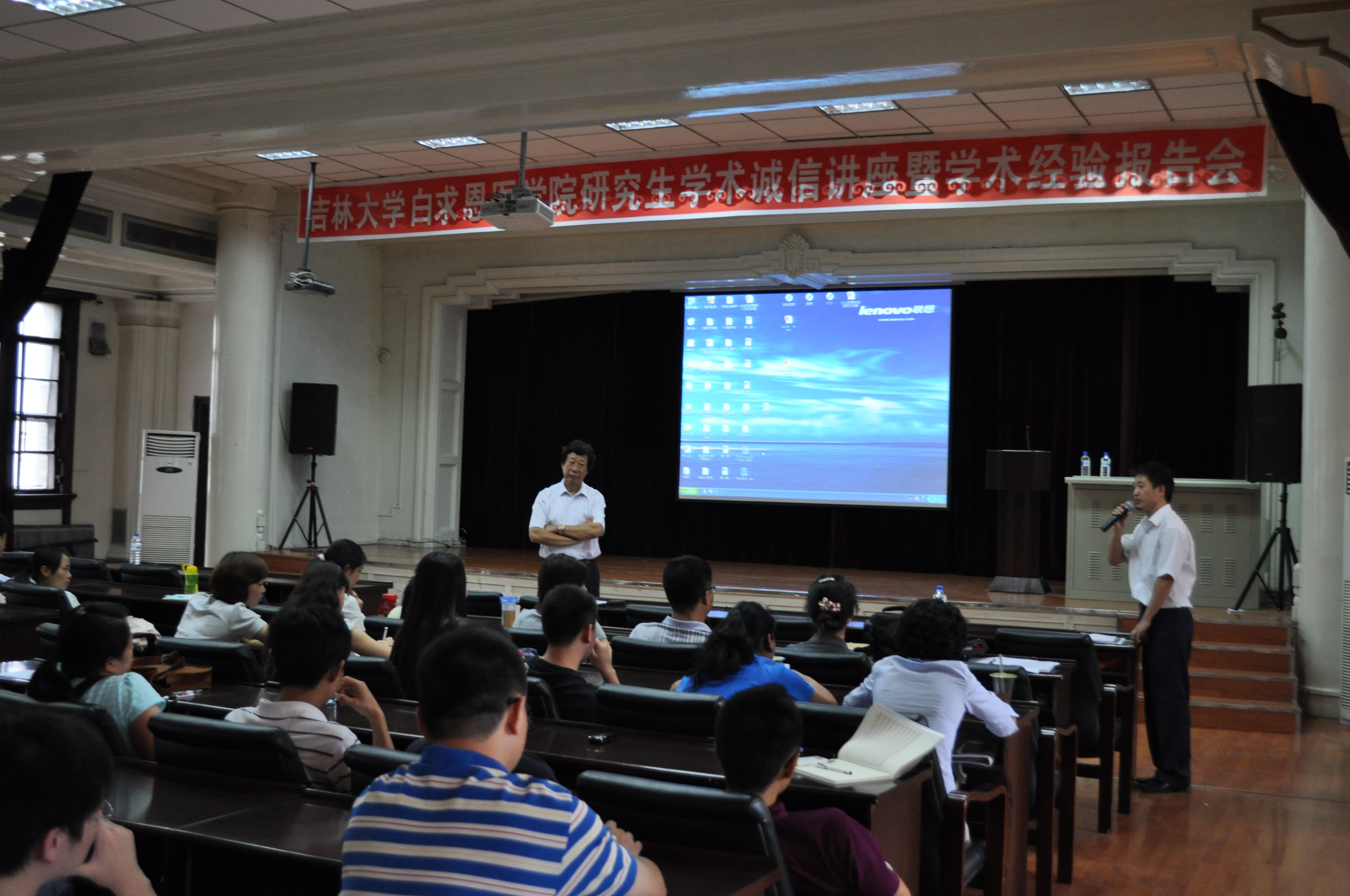 常务副校长、白求恩医学院院长李玉林教授和2010级研究生一起参加了报告会。报告会由学院党委副书记费淑波主持。