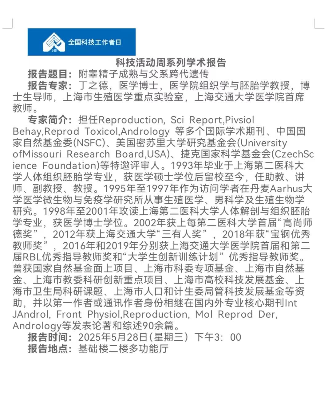 报告地点:基础楼二楼多功能厅