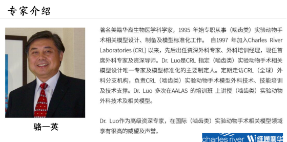 Charles River 实验动物全球首席外科专家和培训导师